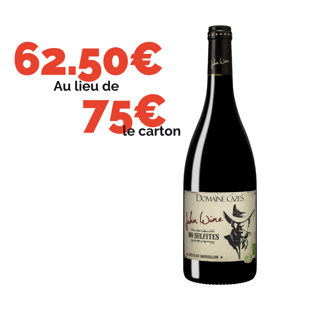 Profitez d’une offre spéciale 5 achetées + 1 offerte sur notre AOP Côtes du Roussillon John Wine millésime 2021.