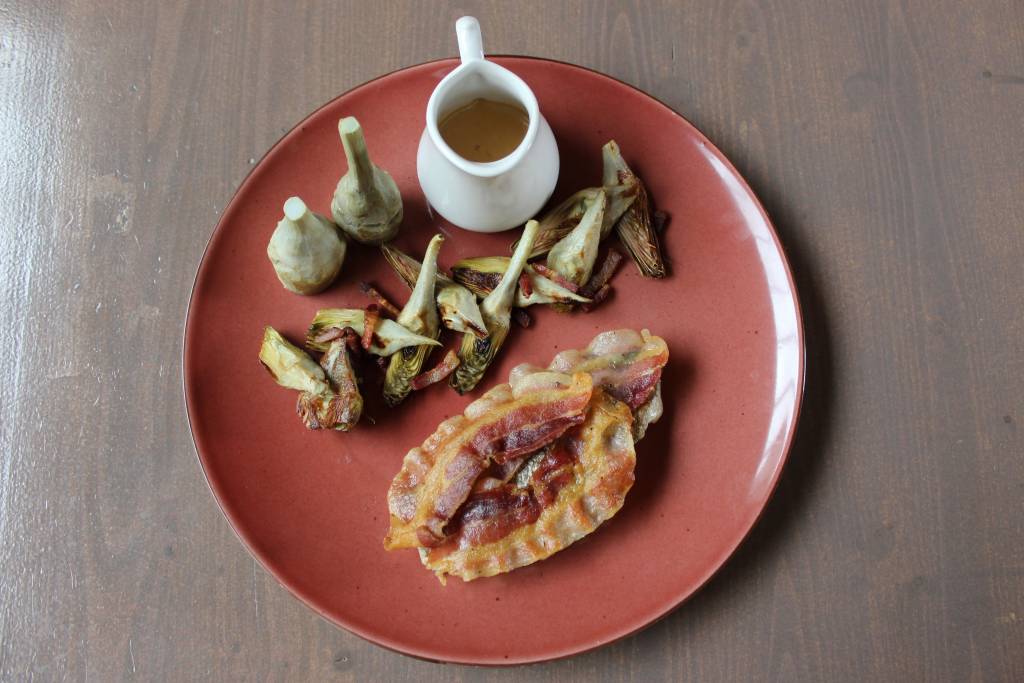 Artichaut au lard poivré, daurade sauvage & sauce au Muscat de Rivesaltes