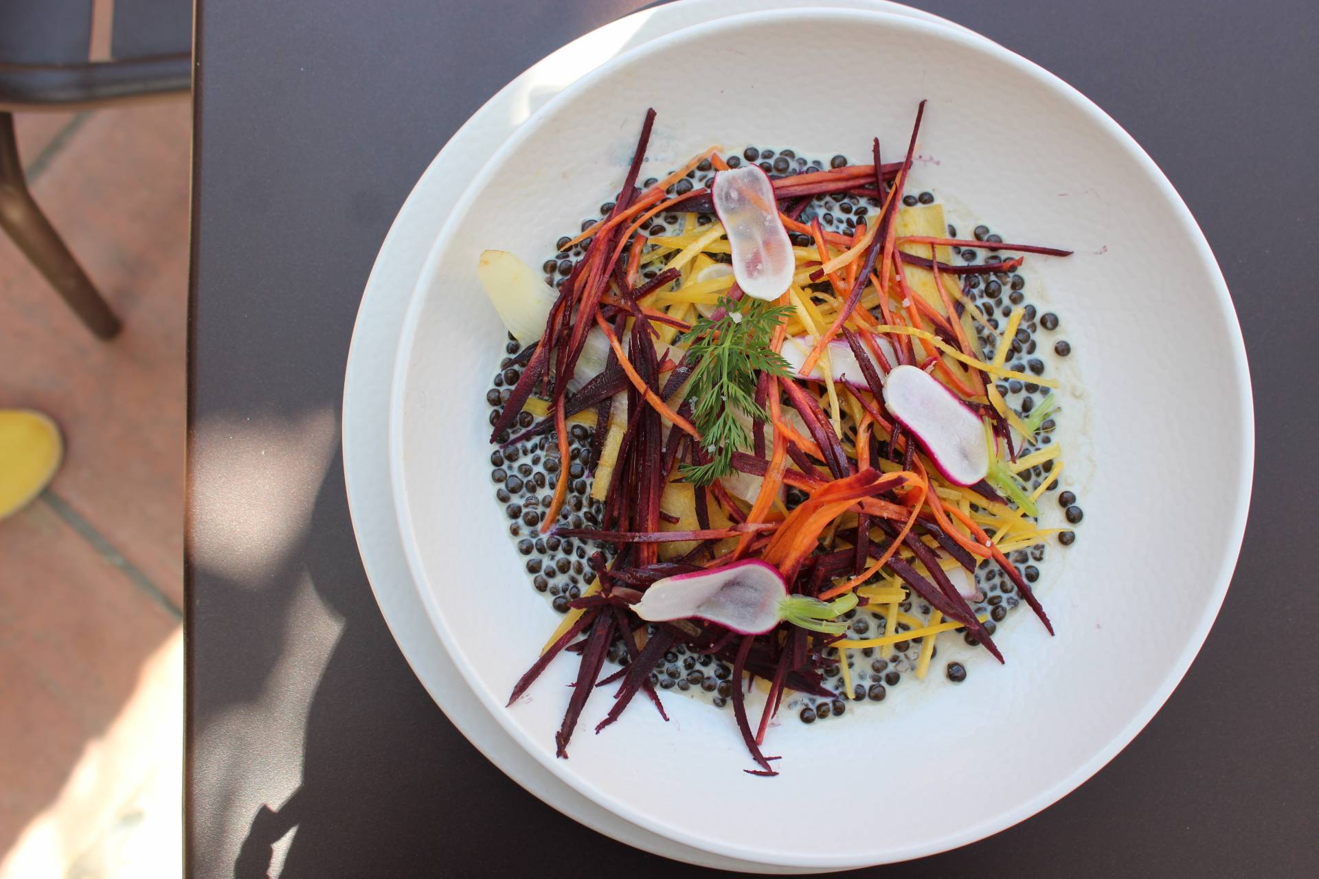 Risotto de lentilles noires à la Tomme de brebis et ses légumes croquants